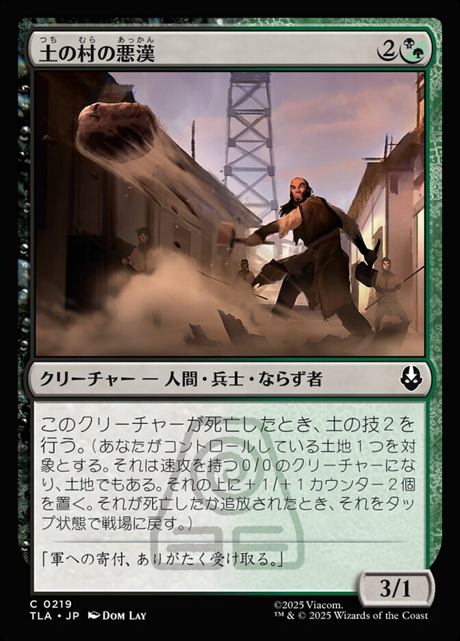| Rules | When this creature dies, earthbend 2. (Target land you control becomes a 0/0 creature with haste that's still a land. Put two +1/+1 counters on it. When it dies or is exiled, return it to the battlefield tapped.) |