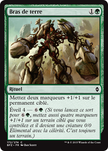 | Rules | Put two +1/+1 counters on target permanent. Awaken 4— (If you cast this spell for , also put four +1/+1 counters on target land you control and it becomes a 0/0 Elemental creature with haste. It's still a land.) |