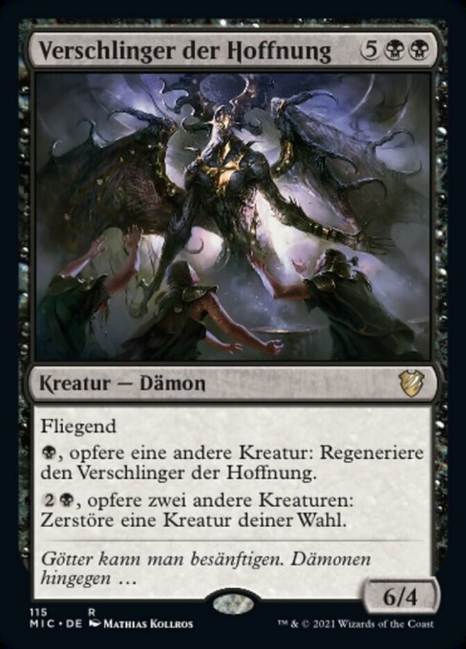 | Rules | Flying , Sacrifice another creature: Regenerate Eater of Hope. , Sacrifice two other creatures: Destroy target creature. |