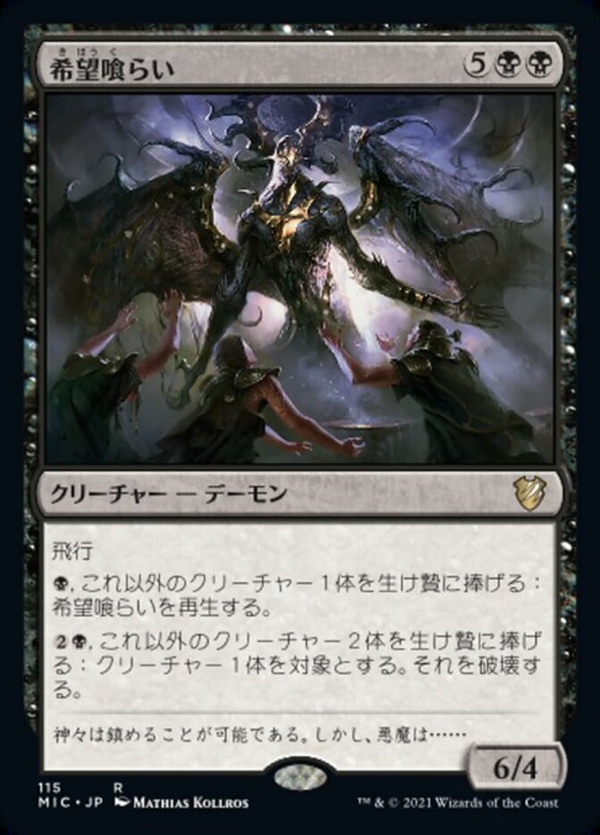 | Rules | Flying , Sacrifice another creature: Regenerate Eater of Hope. , Sacrifice two other creatures: Destroy target creature. |