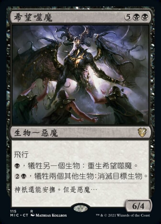 | Rules | Flying , Sacrifice another creature: Regenerate Eater of Hope. , Sacrifice two other creatures: Destroy target creature. |