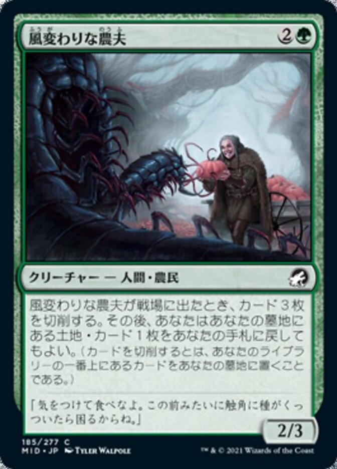 Rules When Eccentric Farmer enters the battlefield, mill three cards, then you may return a land card from your graveyard to your hand. (To mill a card, put the top card of your library into your graveyard.)