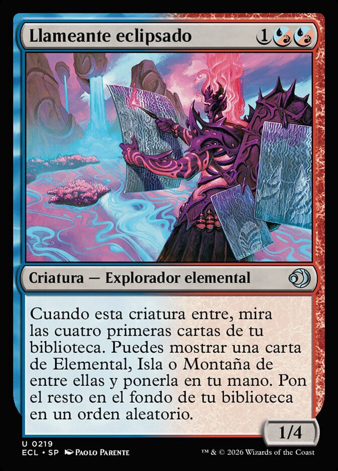 | Rules | When this creature enters, look at the top four cards of your library. You may reveal an Elemental, Island, or Mountain card from among them and put it into your hand. Put the rest on the bottom of your library in a random order. |