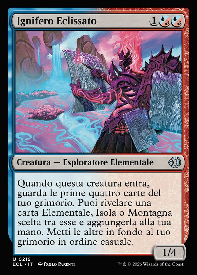 | Rules | When this creature enters, look at the top four cards of your library. You may reveal an Elemental, Island, or Mountain card from among them and put it into your hand. Put the rest on the bottom of your library in a random order. |