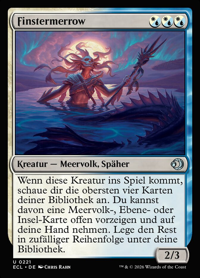 | Rules | When this creature enters, look at the top four cards of your library. You may reveal a Merfolk, Plains, or Island card from among them and put it into your hand. Put the rest on the bottom of your library in a random order. |