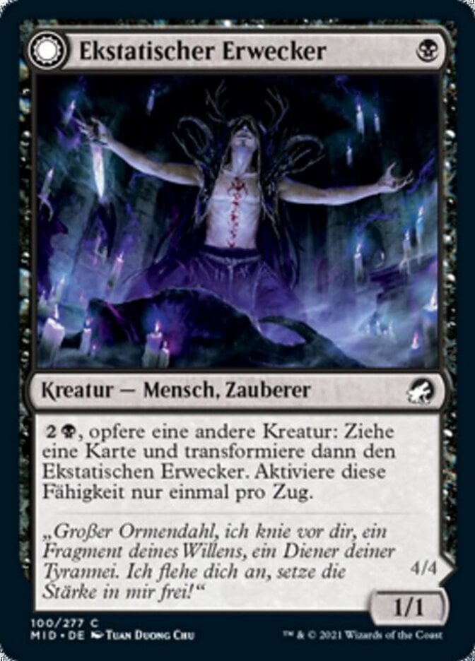 | Rules | , Sacrifice another creature: Draw a card, then transform Ecstatic Awakener. Activate only once each turn. |