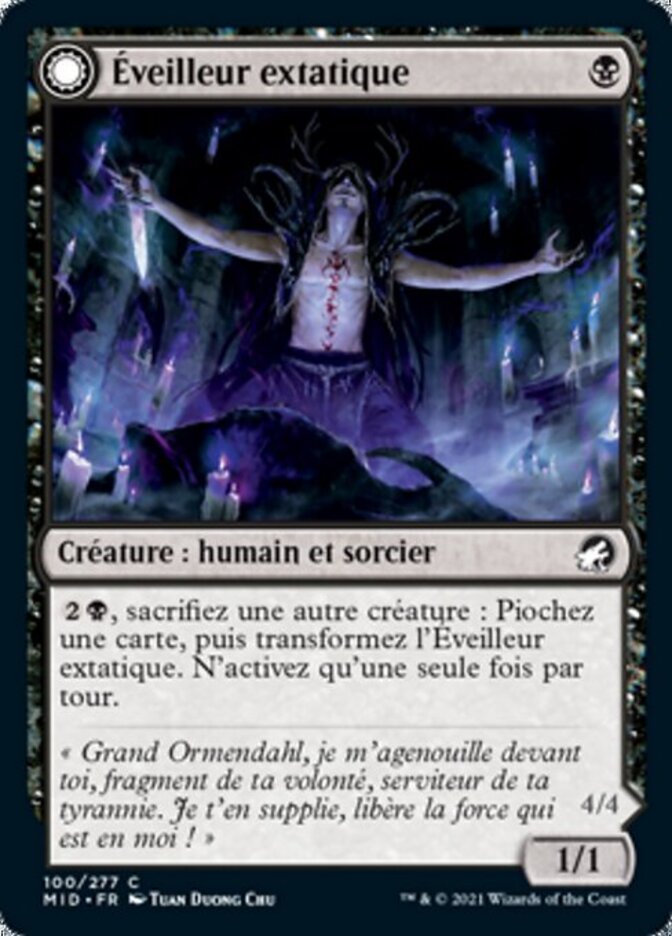 | Rules | , Sacrifice another creature: Draw a card, then transform Ecstatic Awakener. Activate only once each turn. |