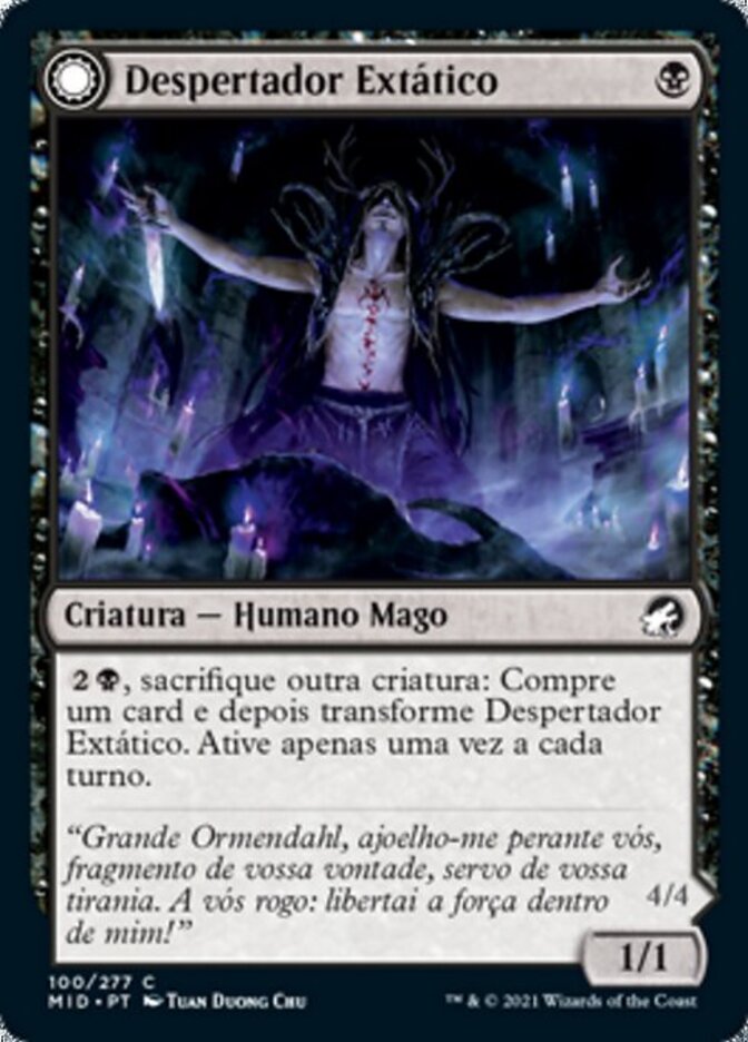 | Rules | , Sacrifice another creature: Draw a card, then transform Ecstatic Awakener. Activate only once each turn. |