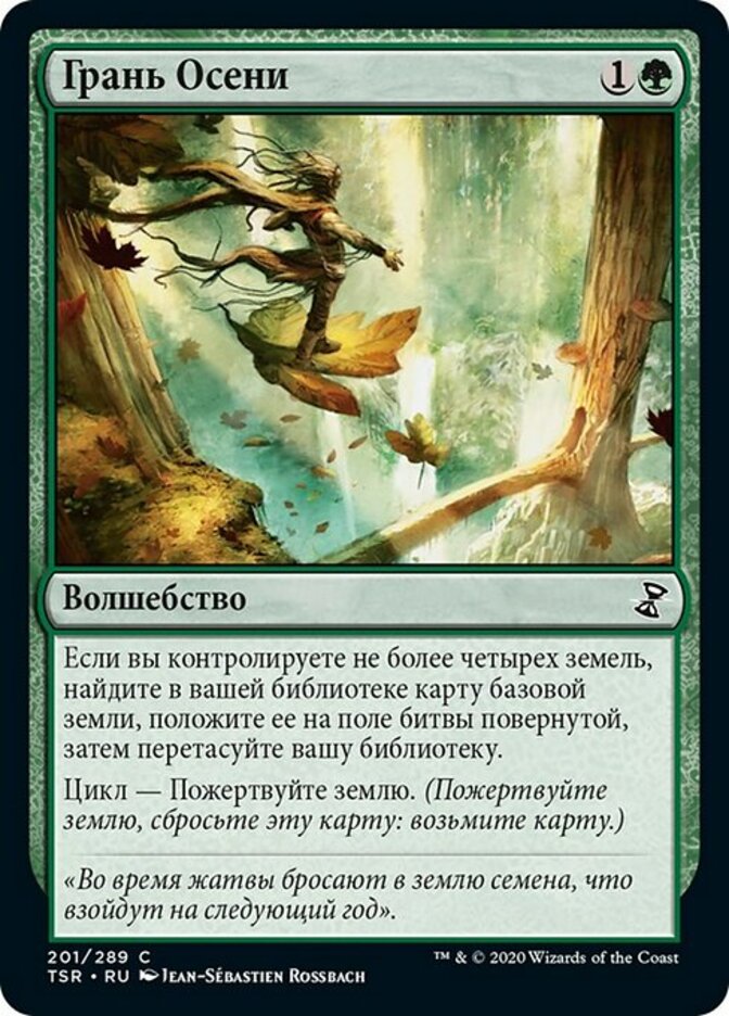 | Rules | If you control four or fewer lands, search your library for a basic land card, put it onto the battlefield tapped, then shuffle. Cycling—Sacrifice a land. (Sacrifice a land, Discard this card: Draw a card.) |