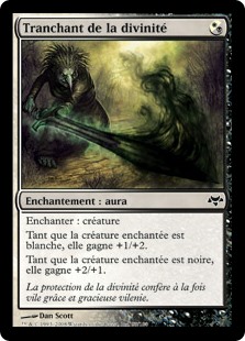 | Rules | Enchant creature As long as enchanted creature is white, it gets +1/+2. As long as enchanted creature is black, it gets +2/+1. |