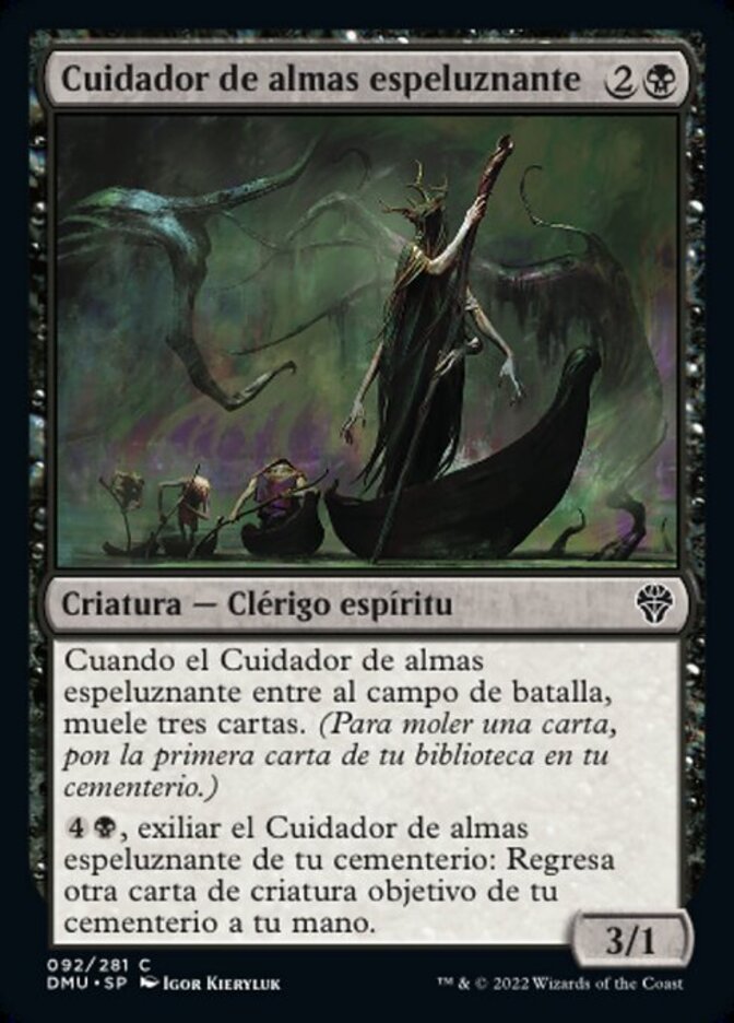 | Rules | When Eerie Soultender enters the battlefield, mill three cards. (To mill a card, put the top card of your library into your graveyard.) , Exile Eerie Soultender from your graveyard: Return another target creature card from your graveyard to your hand. |