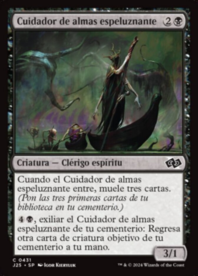 | Rules | When Eerie Soultender enters the battlefield, mill three cards. (To mill a card, put the top card of your library into your graveyard.) , Exile Eerie Soultender from your graveyard: Return another target creature card from your graveyard to your hand. |