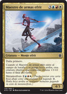 | Rules | First strike When Efreet Weaponmaster enters the battlefield or is turned face up, another target creature you control gets +3/+0 until end of turn. Morph (You may cast this card face down as a 2/2 creature for . Turn it face up any time for its morph cost.) |