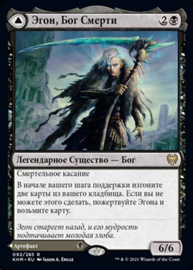 | Rules | Deathtouch At the beginning of your upkeep, exile two cards from your graveyard. If you can't, sacrifice Egon and draw a card. // At the beginning of your upkeep, mill a card. , , Exile a creature card from your graveyard: Draw a card. |
