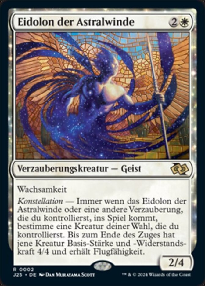 | Rules | Vigilance Constellation — Whenever Eidolon of Astral Winds or another enchantment you control enters, choose target creature you control. Until end of turn, that creature has base power and toughness 4/4 and gains flying. |