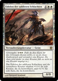 | Rules | Bestow (If you cast this card for its bestow cost, it's an Aura spell with enchant creature. It becomes a creature again if it's not attached to a creature.) Eidolon of Countless Battles and enchanted creature each get +1/+1 for each creature you control and +1/+1 for each Aura you control. |