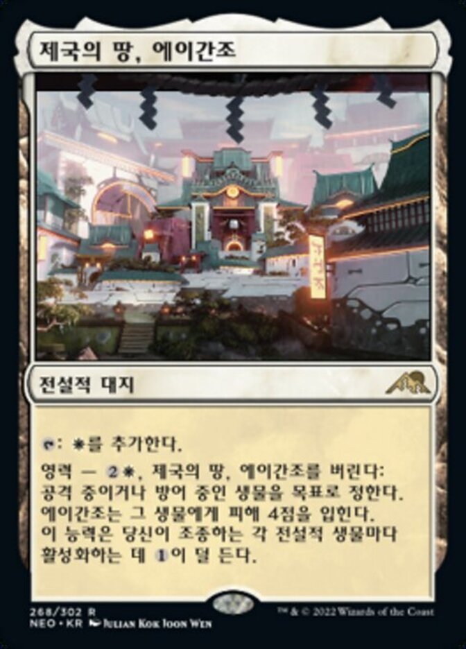 | Rules | : Add . Channel — , Discard Eiganjo, Seat of the Empire: It deals 4 damage to target attacking or blocking creature. This ability costs less to activate for each legendary creature you control. |