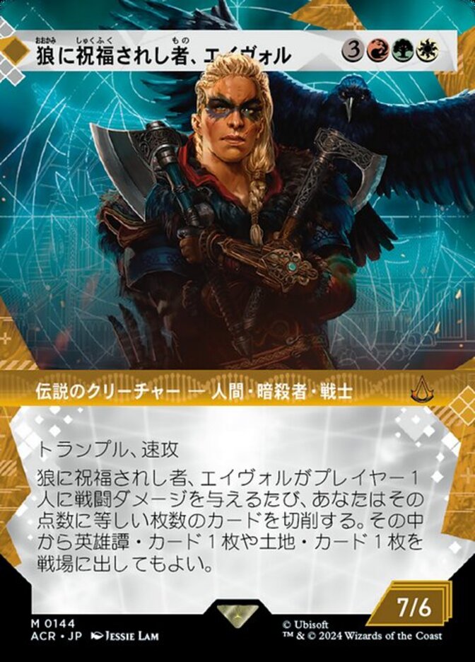 | Rules | Trample, haste Whenever Eivor, Wolf-Kissed deals combat damage to a player, you mill that many cards. You may put a Saga card and/or a land card from among them onto the battlefield. |