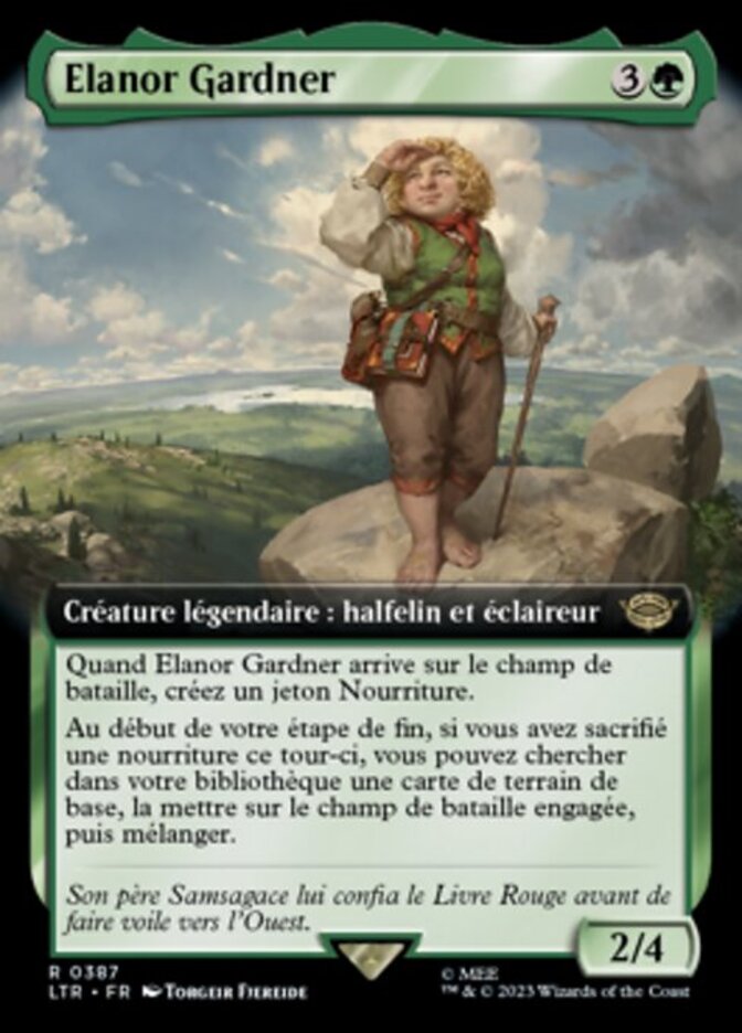 | Rules | When Elanor Gardner enters the battlefield, create a Food token. At the beginning of your end step, if you sacrificed a Food this turn, you may search your library for a basic land card, put that card onto the battlefield tapped, then shuffle. |