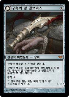 | Rules | Equipped creature gets +1/+0. When equipped creature deals combat damage to a player, unattach Elbrus, the Binding Blade, then transform it. Equip // Flying, intimidate, trample (A creature with intimidate can't be blocked except by artifact creatures and/or creatures that share a color with it.) Whenever a player loses the game, put thirteen +1/+1 counters on Withengar Unbound. |