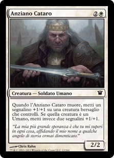 | Rules | When Elder Cathar dies, put a +1/+1 counter on target creature you control. If that creature is a Human, put two +1/+1 counters on it instead. |