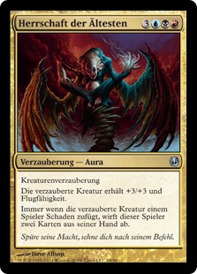 | Rules | Enchant creature Enchanted creature gets +3/+3 and has flying. Whenever enchanted creature deals damage to a player, that player discards two cards. |