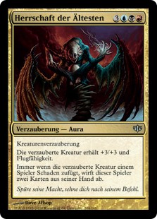 | Rules | Enchant creature Enchanted creature gets +3/+3 and has flying. Whenever enchanted creature deals damage to a player, that player discards two cards. |