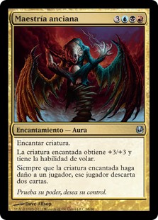 | Rules | Enchant creature Enchanted creature gets +3/+3 and has flying. Whenever enchanted creature deals damage to a player, that player discards two cards. |