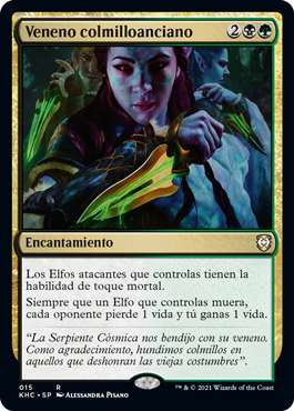 | Rules | Attacking Elves you control have deathtouch. Whenever an Elf you control dies, each opponent loses 1 life and you gain 1 life. |
