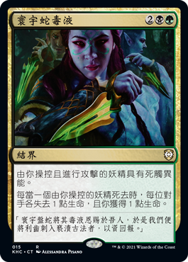 | Rules | Attacking Elves you control have deathtouch. Whenever an Elf you control dies, each opponent loses 1 life and you gain 1 life. |