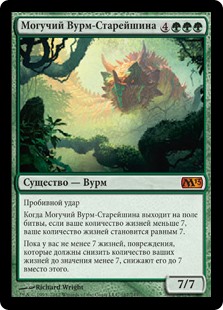 | Rules | Trample When Elderscale Wurm enters the battlefield, if your life total is less than 7, your life total becomes 7. As long as you have 7 or more life, damage that would reduce your life total to less than 7 reduces it to 7 instead. |