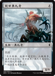 | Flavor | "No matter how big your champion, theirs is bigger. No matter how great your numbers, theirs are greater. No matter how voracious your appetite, they are hungrier. That is why the Eldrazi will win."-Kalitas, thrall of Ulamog |