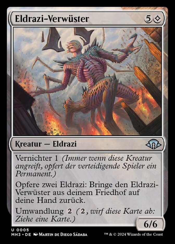| Rules | Annihilator 1 (Whenever this creature attacks, defending player sacrifices a permanent.) Sacrifice two Eldrazi: Return Eldrazi Ravager from your graveyard to your hand. Cycling (, Discard this card: Draw a card.) |