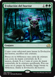 | Rules | As an additional cost to cast this spell, sacrifice a creature. Search your library for a creature card with mana value X or less, where X is 2 plus the sacrificed creature's mana value. Put that card onto the battlefield, then shuffle. Exile Eldritch Evolution. |