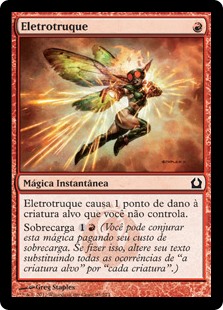 | Rules | Electrickery deals 1 damage to target creature you don't control. Overload (You may cast this spell for its overload cost. If you do, change its text by replacing all instances of "target" with "each.") |