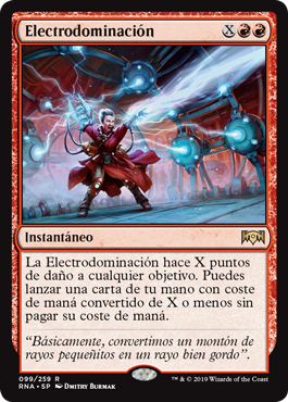 | Rules | Electrodominance deals X damage to any target. You may cast a spell with mana value X or less from your hand without paying its mana cost. |