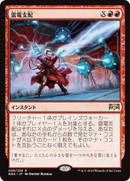 | Rules | Electrodominance deals X damage to any target. You may cast a spell with mana value X or less from your hand without paying its mana cost. |