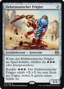 | Rules | When Electrostatic Pummeler enters the battlefield, you get (three energy counters). Pay : Electrostatic Pummeler gets +X/+X until end of turn, where X is its power. |
