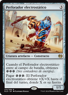 | Rules | When Electrostatic Pummeler enters the battlefield, you get (three energy counters). Pay : Electrostatic Pummeler gets +X/+X until end of turn, where X is its power. |