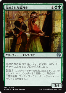 | Rules | Elegant Edgecrafters can't be blocked by creatures with power 2 or less. Fabricate 2 (When this creature enters the battlefield, put two +1/+1 counters on it or create two 1/1 colorless Servo artifact creature tokens.) |