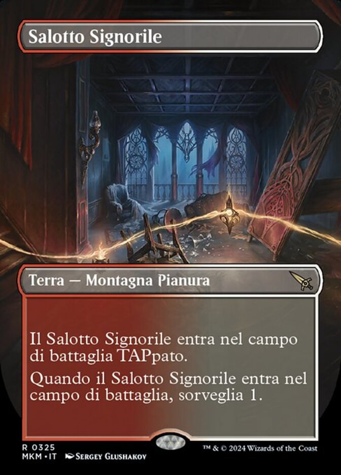 | Rules | (: Add or .) Elegant Parlor enters the battlefield tapped. When Elegant Parlor enters the battlefield, surveil 1. (Look at the top card of your library. You may put it into your graveyard.) |