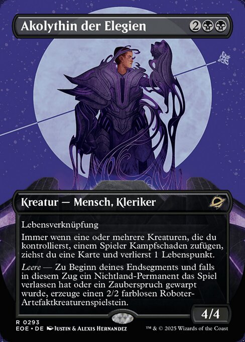 | Rules | Lifelink Whenever one or more creatures you control deal combat damage to a player, you draw a card and lose 1 life. Void — At the beginning of your end step, if a nonland permanent left the battlefield this turn or a spell was warped this turn, create a 2/2 colorless Robot artifact creature token. |