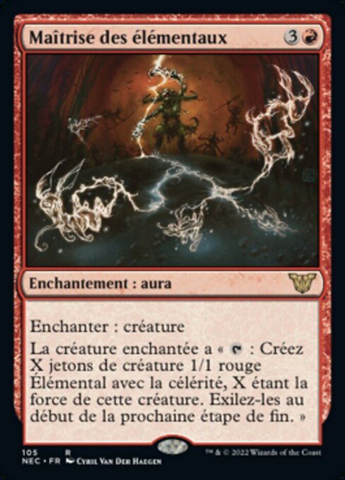 | Rules | Enchant creature Enchanted creature has ": Create X 1/1 red Elemental creature tokens with haste, where X is this creature's power. Exile them at the beginning of the next end step." |