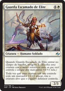 | Rules | When Elite Scaleguard enters the battlefield, bolster 2. (Choose a creature with the least toughness among creatures you control and put two +1/+1 counters on it.) Whenever a creature you control with a +1/+1 counter on it attacks, tap target creature defending player controls. |