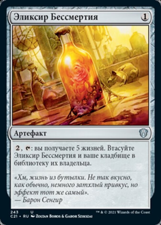 | Rules | , : You gain 5 life. Shuffle Elixir of Immortality and your graveyard into their owner's library. |