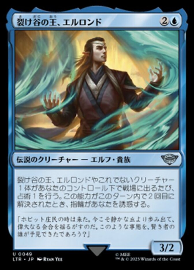 | Rules | Whenever Elrond, Lord of Rivendell or another creature enters the battlefield under your control, scry 1. If this is the second time this ability has resolved this turn, the Ring tempts you. |