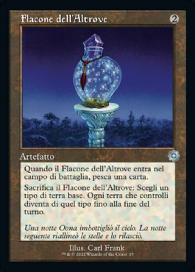 | Rules | When Elsewhere Flask enters the battlefield, draw a card. Sacrifice Elsewhere Flask: Choose a basic land type. Each land you control becomes that type until end of turn. |