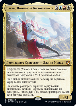 | Rules | Prowess (Whenever you cast a noncreature spell, this creature gets +1/+1 until end of turn.) You may look at the top card of your library any time. You may cast noncreature spells from the top of your library. If you cast a spell this way, you may cast it as though it had flash. |