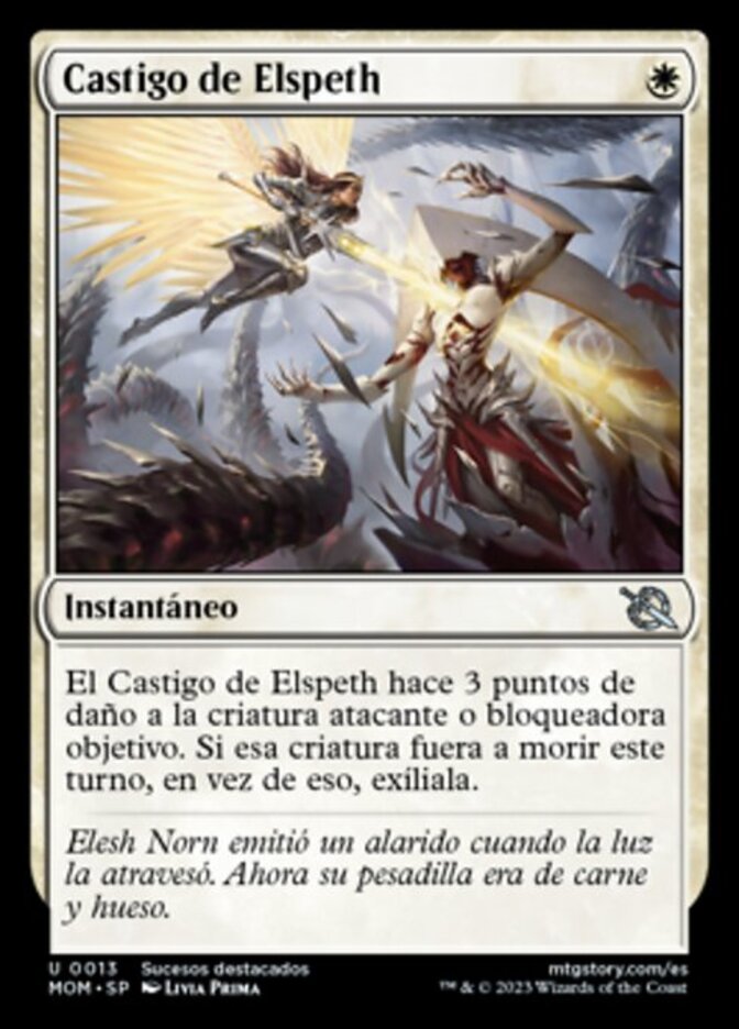 | Rules | Elspeth's Smite deals 3 damage to target attacking or blocking creature. If that creature would die this turn, exile it instead. |