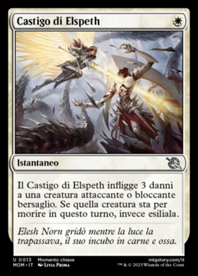 | Rules | Elspeth's Smite deals 3 damage to target attacking or blocking creature. If that creature would die this turn, exile it instead. |